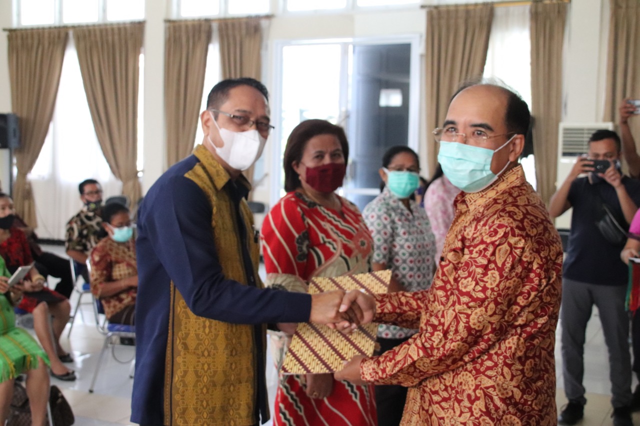 PORTALNTT.COM, KOTA KUPANG – Pemerintah Kota Kupang melalui Badan Kepegawaian, Pelatihan dan Pendidikan Daerah (BKPPD) Kota Kupang kembali menyerahkan santunan bagi para Pensiunan Aparatur Sipil Negara Lingkup Pemerintah Kota Kupang. Kali ini santunan diberikan kepada 66 pensiunan ASN Pemkot Kupang. Penyerahan dilakukan oleh Wali Kota Kupang Dr. Jefirstson R. Riwu Kore, MM, MH, Jumat (02/10) pagi bertempat di Aula Rumah Jabatan Wali Kota Kupang Jalan Perintis Kemerdekaan Kelurahan Kelapa Lima.
