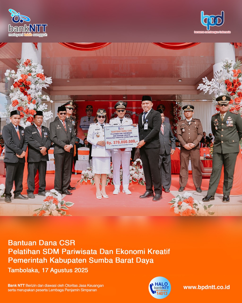 Peringatan HUT RI yang berlangsung meriah dan penuh makna, Bank NTT Cabang Waitabula turut memberikan program tanggung jawab sosial (CSR) dan layanan digital.