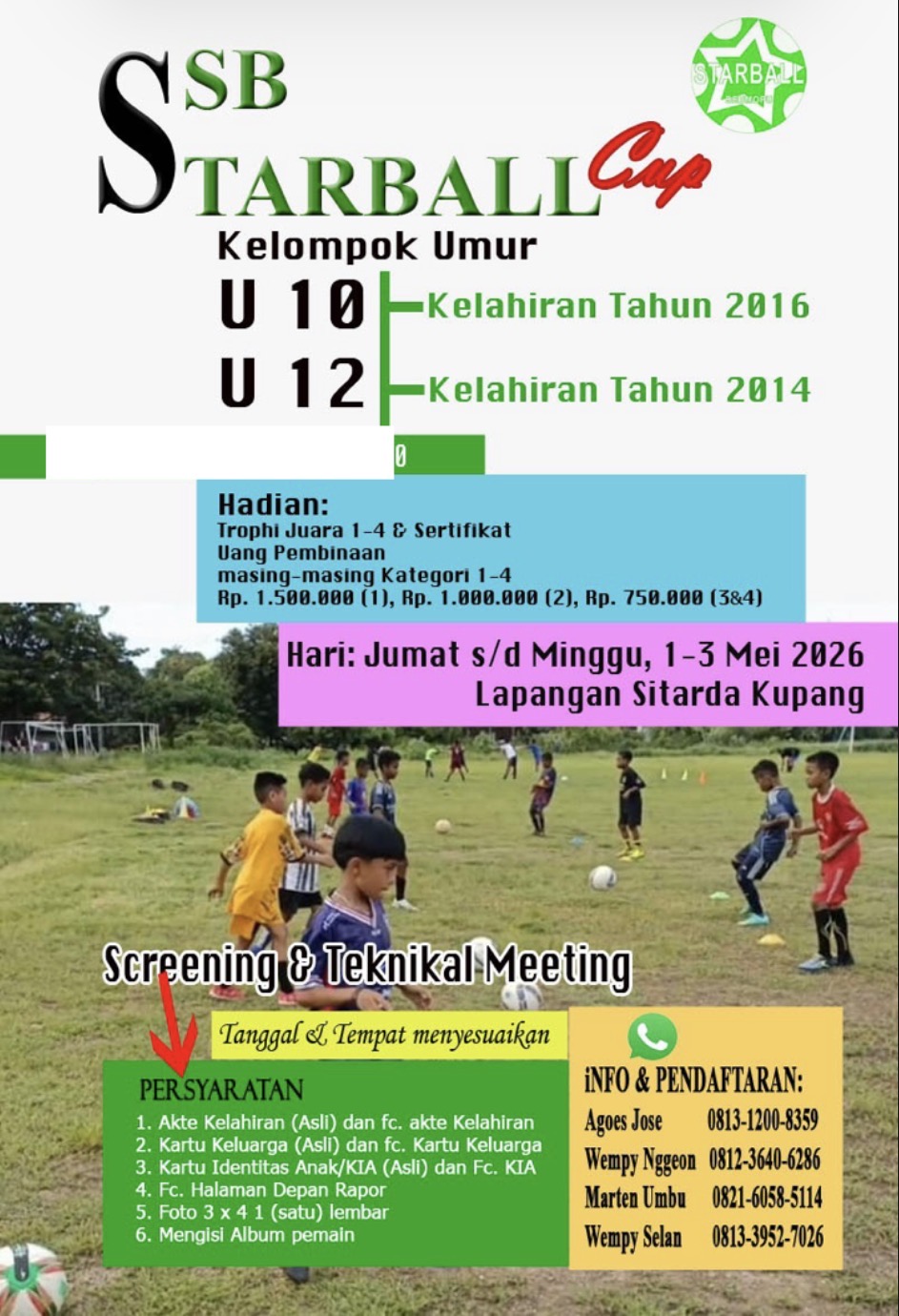 PORTALNTT.COM, KUPANG – Komitmen terhadap pembinaan sepak bola usia dini di Nusa Tenggara Timur kembali ditunjukkan melalui gelaran Starball Cup I yang akan berlangsung pada 1–3 Mei 2026di Lapangan Sitarda, Lasiana, Kota Kupang.