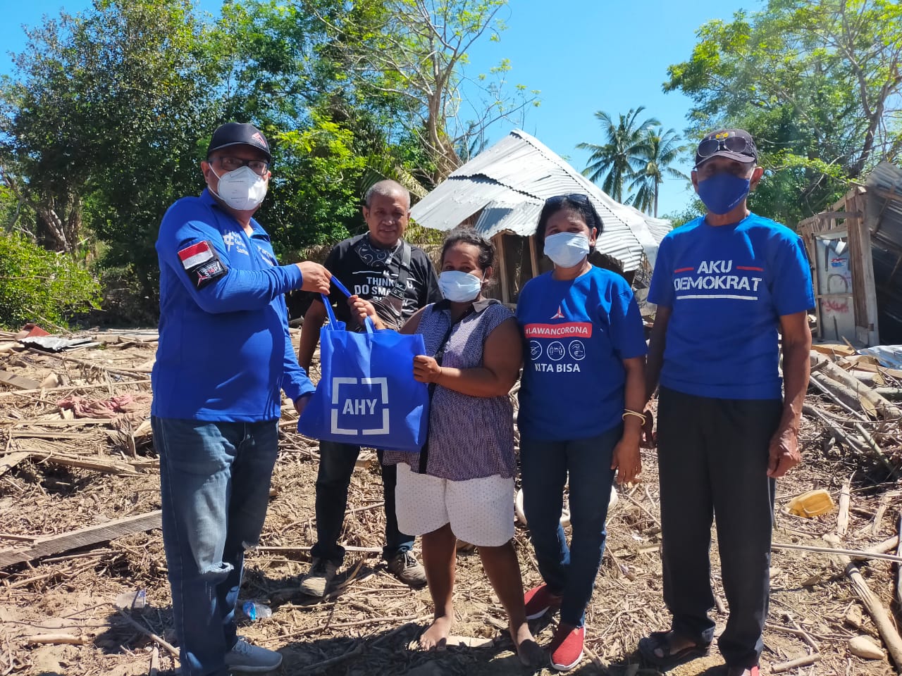 Ketua Umum AHY, memberikan 70 paket bantuan di Kecamatan Sulamu, bantuan tersebut terdiri dari beras, mie instan, gula pasir, vitamin c dan masker.