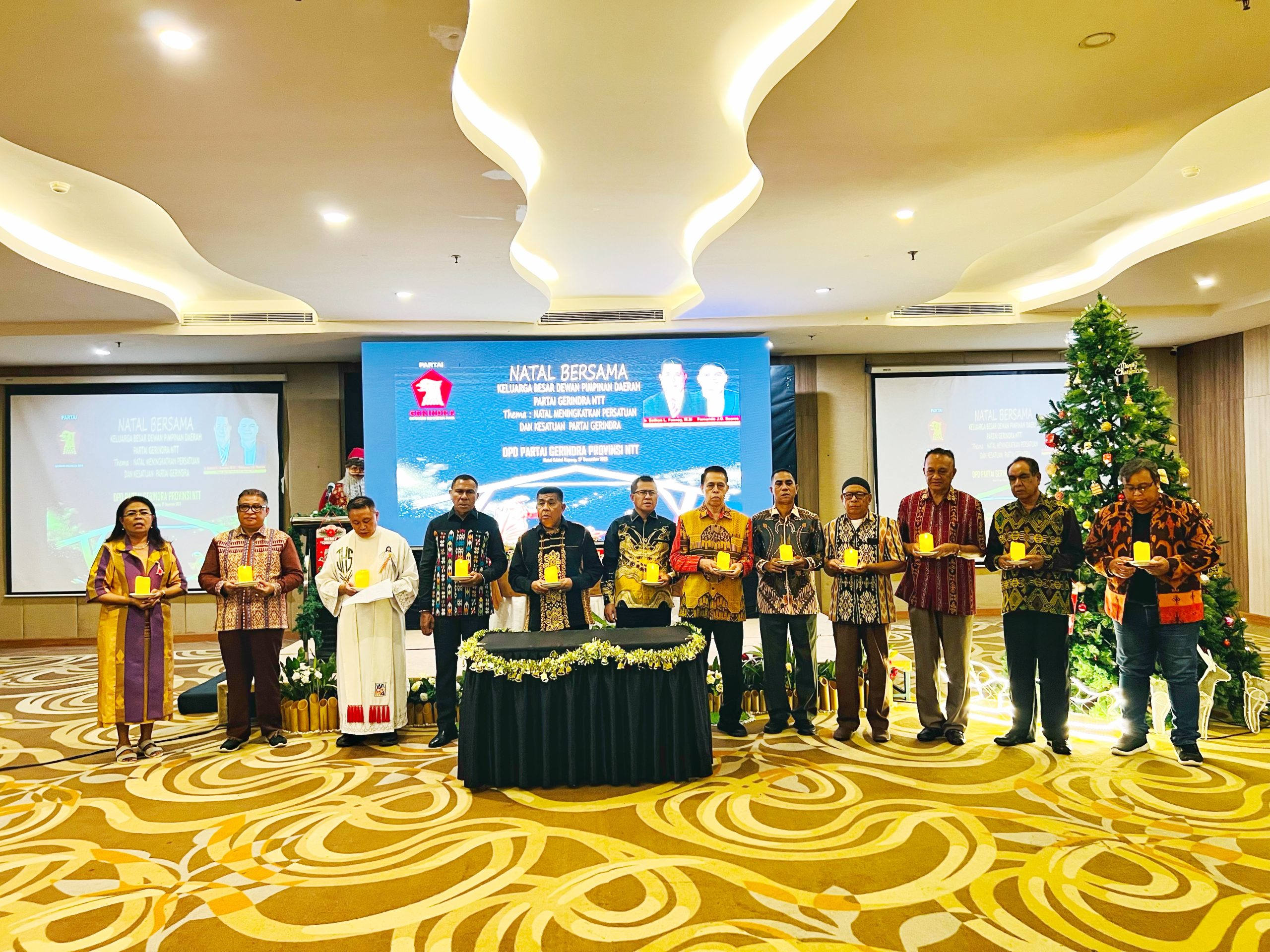 PORTALNTT.COM, KUPANG – Dewan Pimpinan Daerah (DPD) Partai Gerindra Provinsi Nusa Tenggara Timur (NTT) menggelar Ibadah Natal bersama keluarga besar Partai Gerindra, sebagai momentum mempererat persatuan dan memperkuat soliditas internal partai, Sabtu (27/12/2025) di Hotel Kristal Kupang.