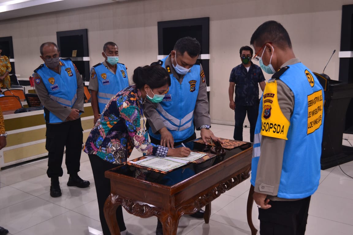 PORTALNTT.COM, KOTA KUPANG – Dalam rangka menghindari penyebaran Virus Covid19, Biro Sumber Daya Manusia (SDM) Polda Nusa Tenggara Timur (NTT) selaku penyelenggara penerimaan Polri tahun 2020 harus menjalani proses-proses secara online. Rabu (8/4/2020) digelar pengambilan sumpah dan penandatanganan pakta integritas penerimaan terpadu bidan dan perawat di aula Rupatama lantai III Mapolda NTT.