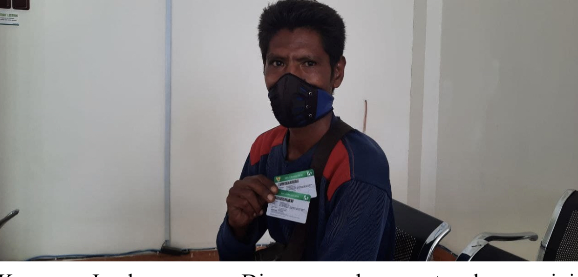 Simeon Sefnat (40) bercerita bagaimana pengalaman pertamanya menggunakan JKN-KIS saat sang istri menjalani persalinan. Menurutnya, pelayanan yang diperoleh sebagai peserta JKN-KIS sangat baik dan tidak ada perbedaan dengan peserta umum lainnya.