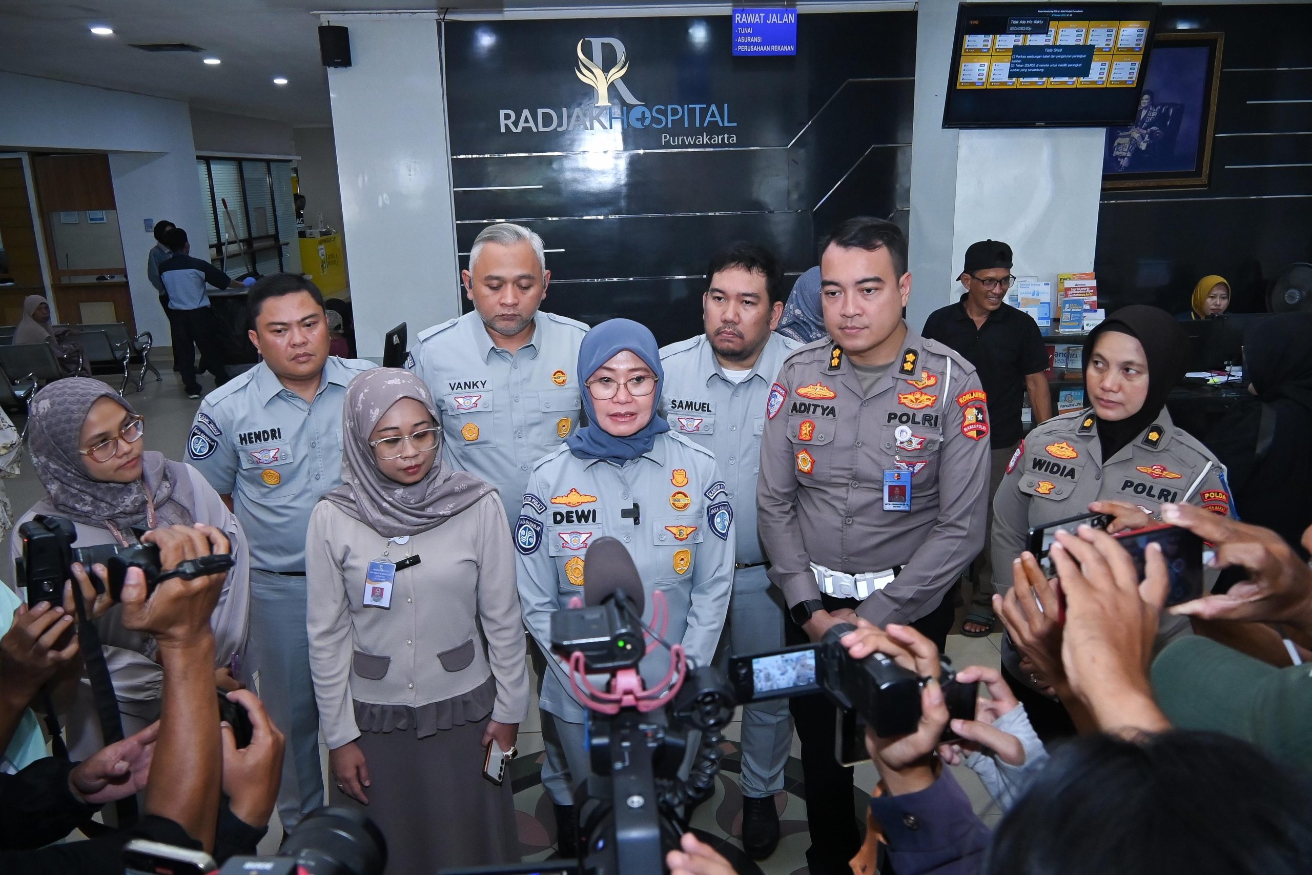 Plt. Direktur Utama Jasa Raharja Dewi Aryani Suzana menyempatkan hadir di RS Abdul Radjak dan RS Siloam Purwakarta untuk menjenguk para korban kecelakaan.