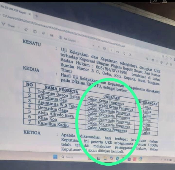 PORTALNTT.COM, KUPANG – Pernyataan Wakil General Manager KSP Kopdit Swasti Sari sekaligus wakil ketua panitia pemilihan, Kasmirus Kopong, yang menyebut Uji Kelayakan dan Kepatutan (UKK) bukan penentu jabatan, menuai tanggapan keras.