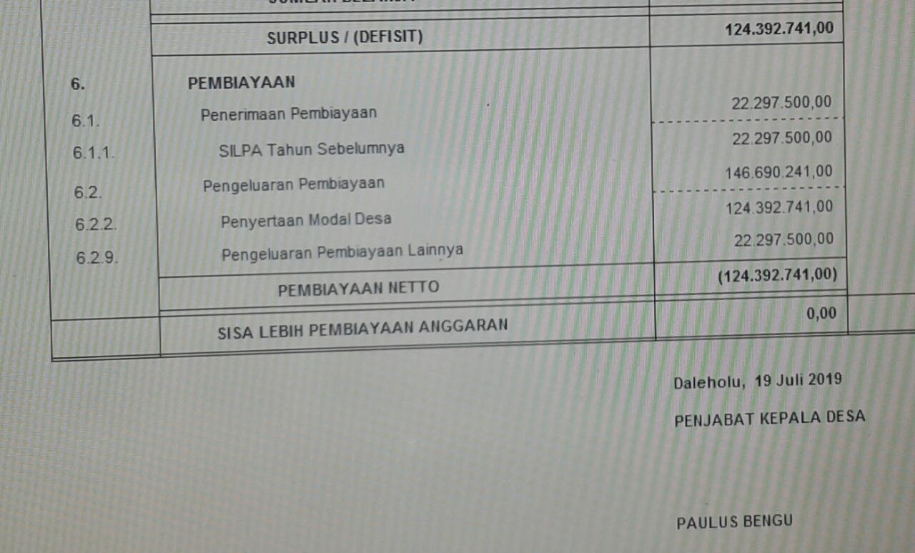 Pasalnya, sesuai data yang media ini peroleh dari pihak Dinas Pemberdayaan Masyarakat dan Desa (DPMD) Kab. Rote Ndao, pada bulan Januari 2020, bahwa di tahun 2018 tercatat di APBDes Daleholu ada pos anggaran untuk penyertaan Modal Bumdes sebesar Rp. 53.808.000.