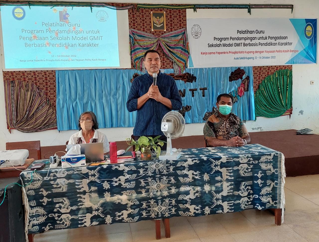 Pelatihan diiisi dengan materi yang disampaikan Pdt Dr J Inabuy yang juga pembina Yayasan Pelita Kasjh Bangsa, Maxwell Halundaka, ketua Yapenkris Prisqila Kota Kupang, Ny Itje Inabuy dan sejumlah pengajar dari sekolah abdi Kasih Bangsa Kupang.